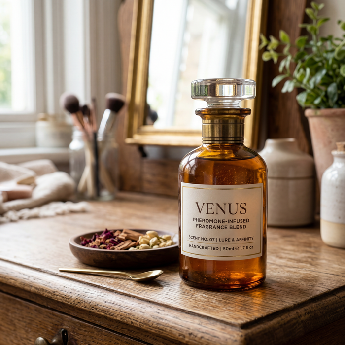 Our signature fragrance blend is designed to complement your natural chemistry, creating a warm, captivating scent that enhances your presence and leaves a lasting impression.