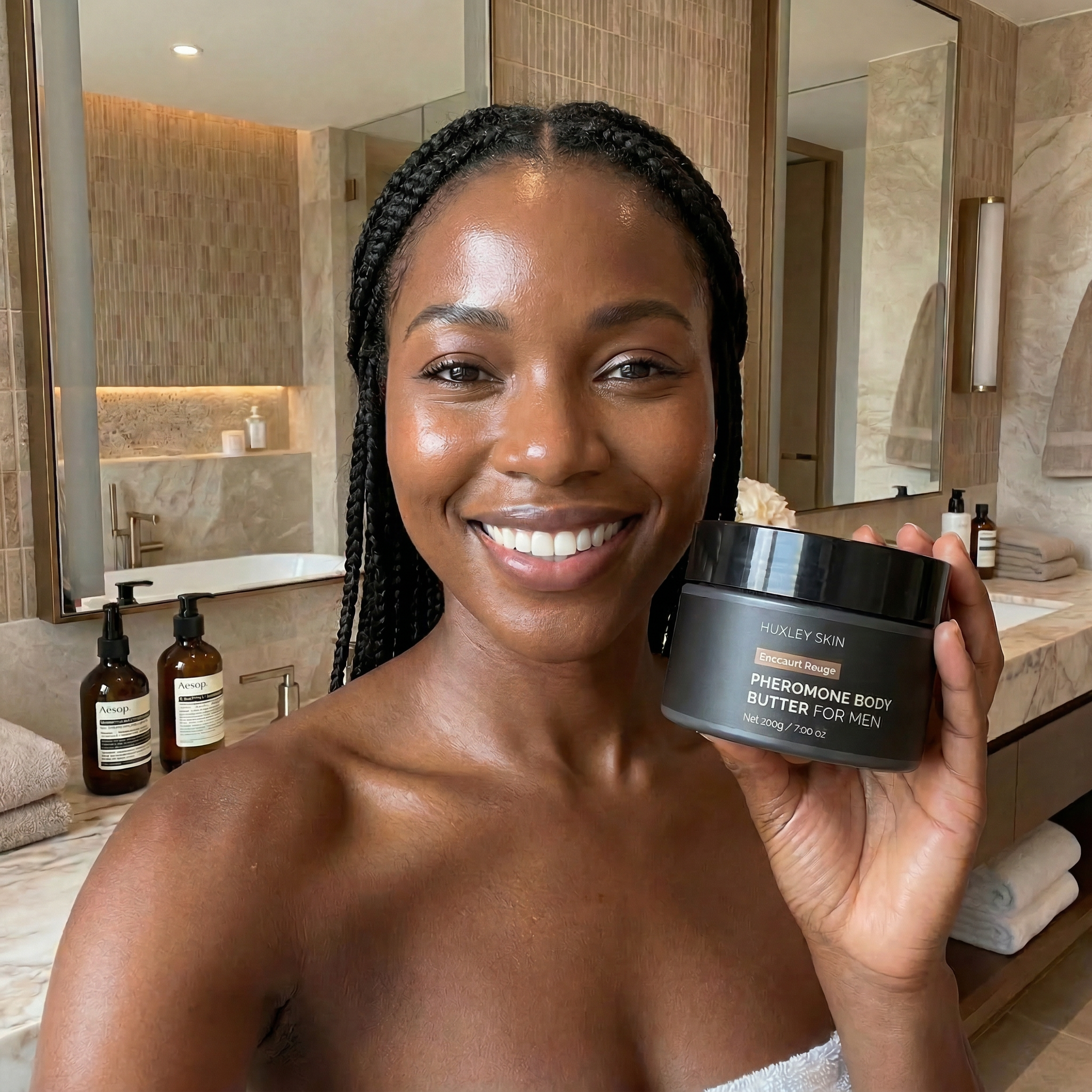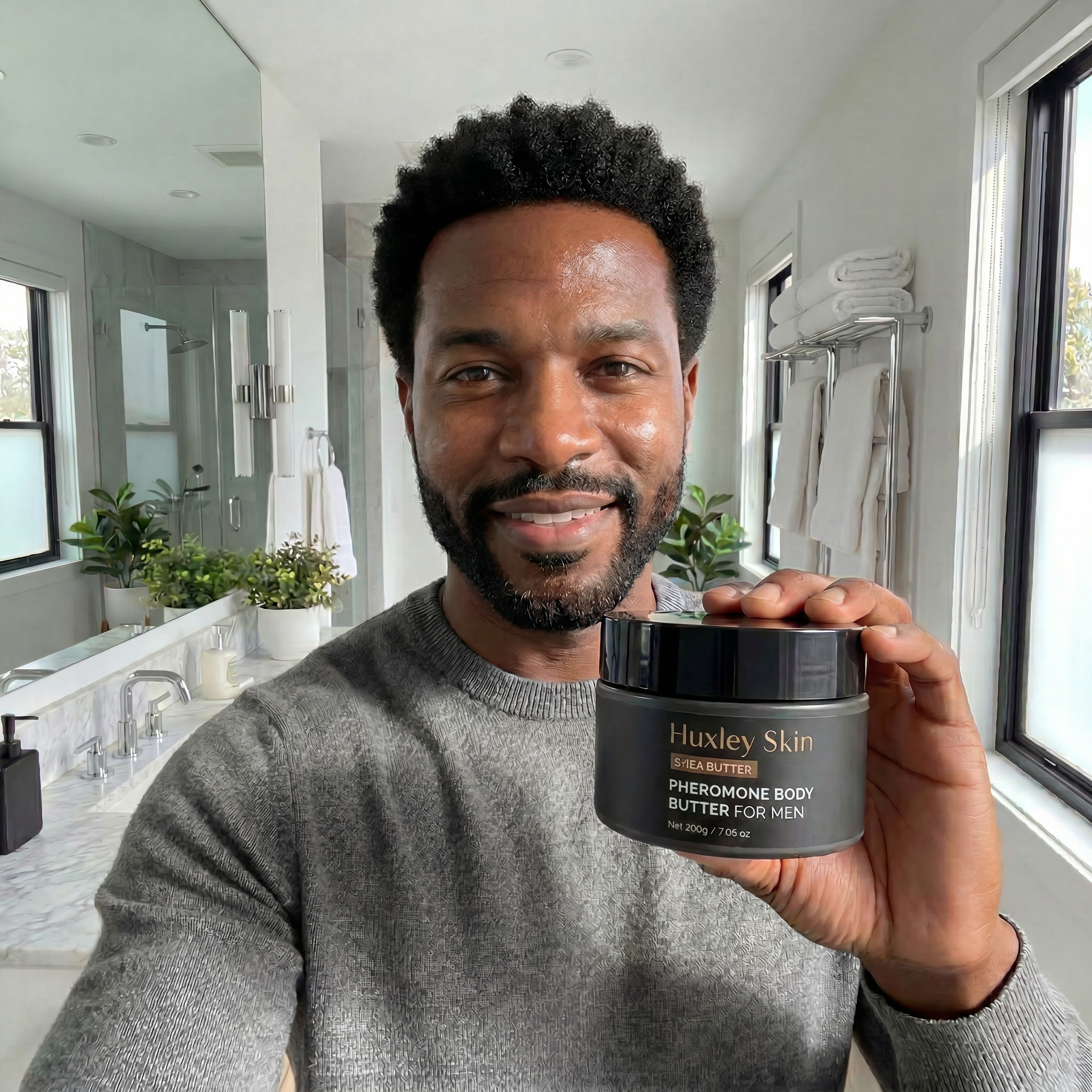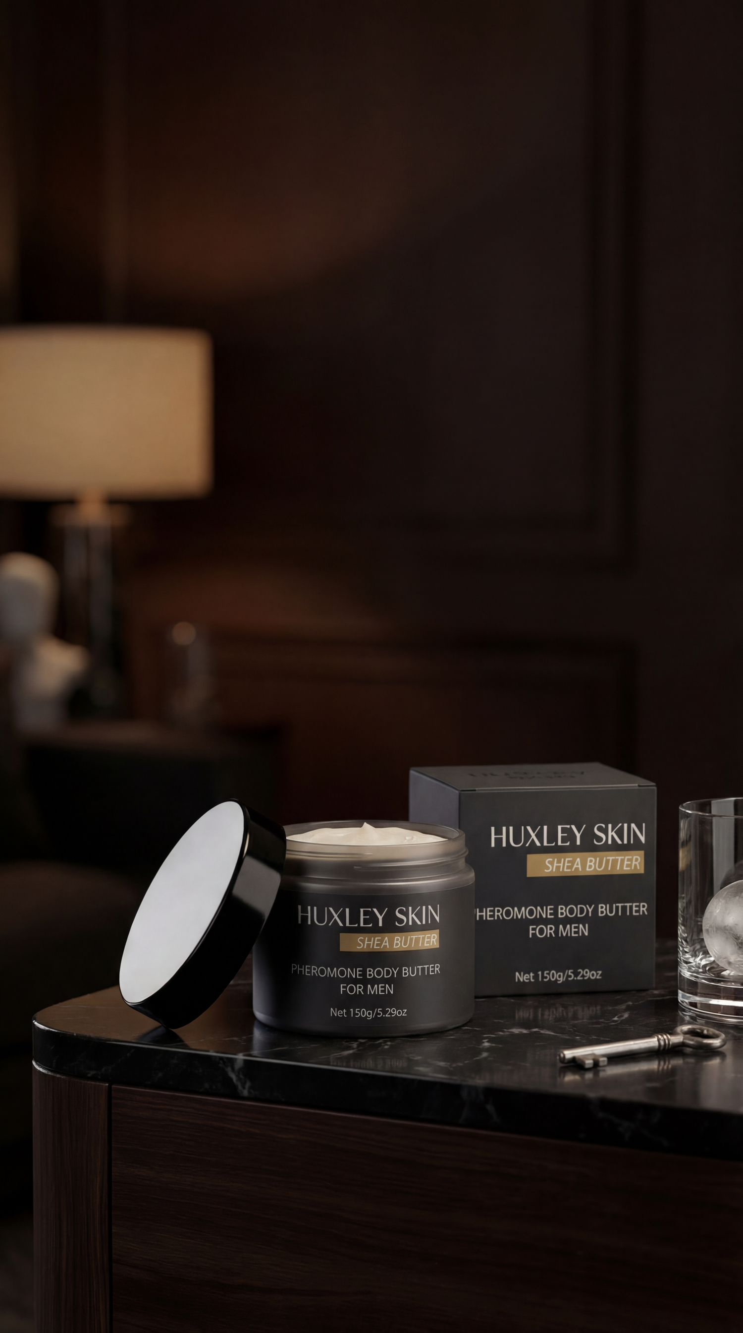 Huxley Skin Pheromone Body Butter is a premium grooming product designed to deeply hydrate the skin while leaving a captivating scent. Our formula combines nourishing ingredients like shea butter with fragrance blends inspired by some of the world’s most iconic designer scents.
